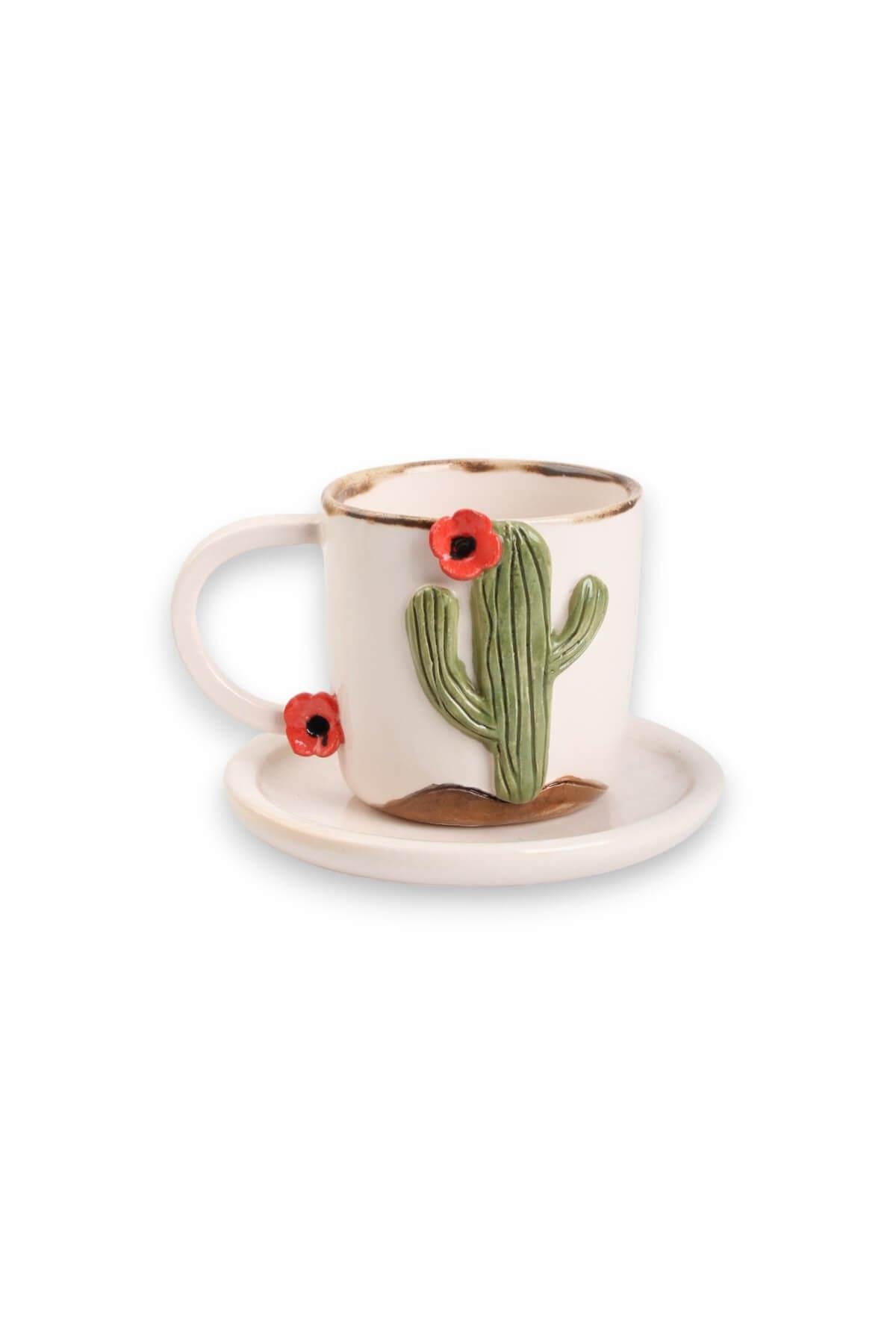 Seramik El Yapımı Kaktüslü Kahve Fincanı