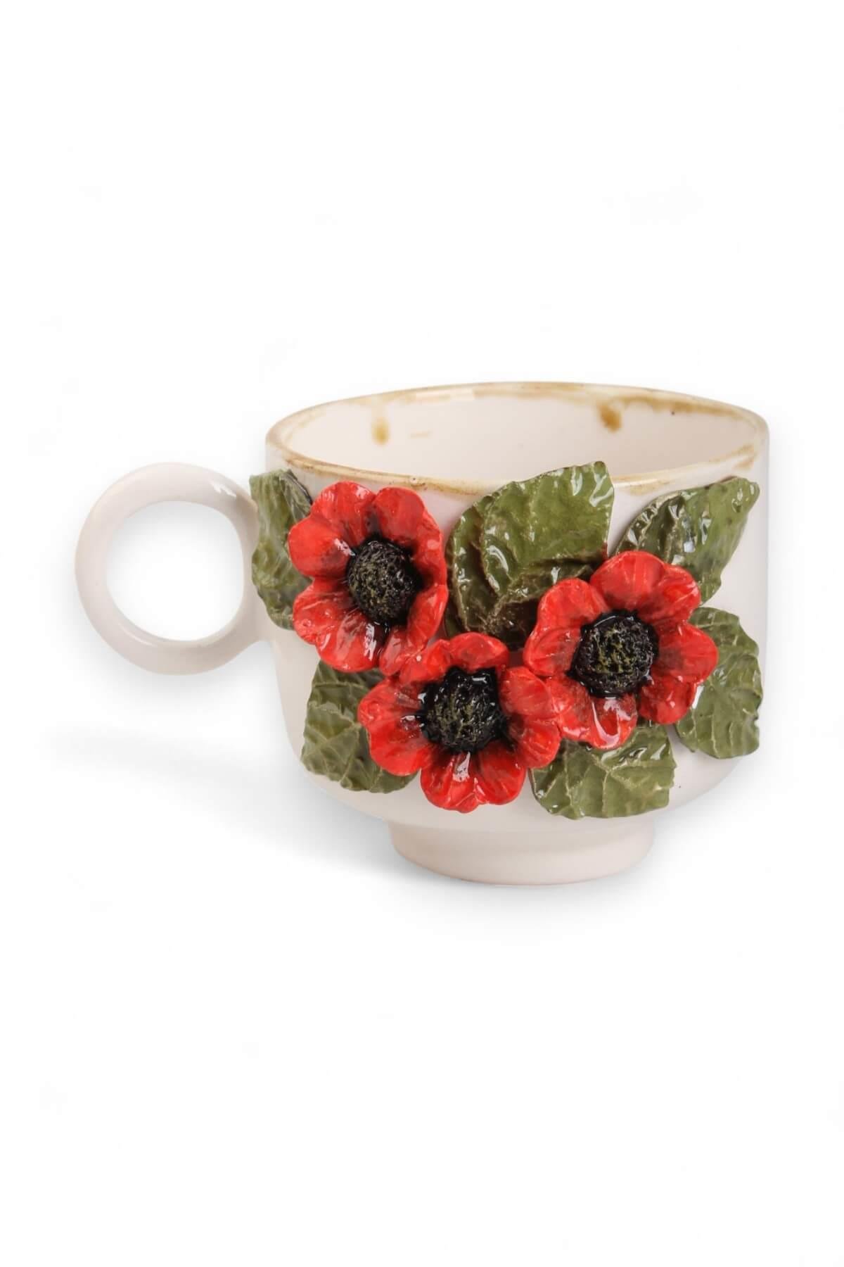 🌺 Seramik El Yapımı Gelincik Çiçekli Kahve Fincanı