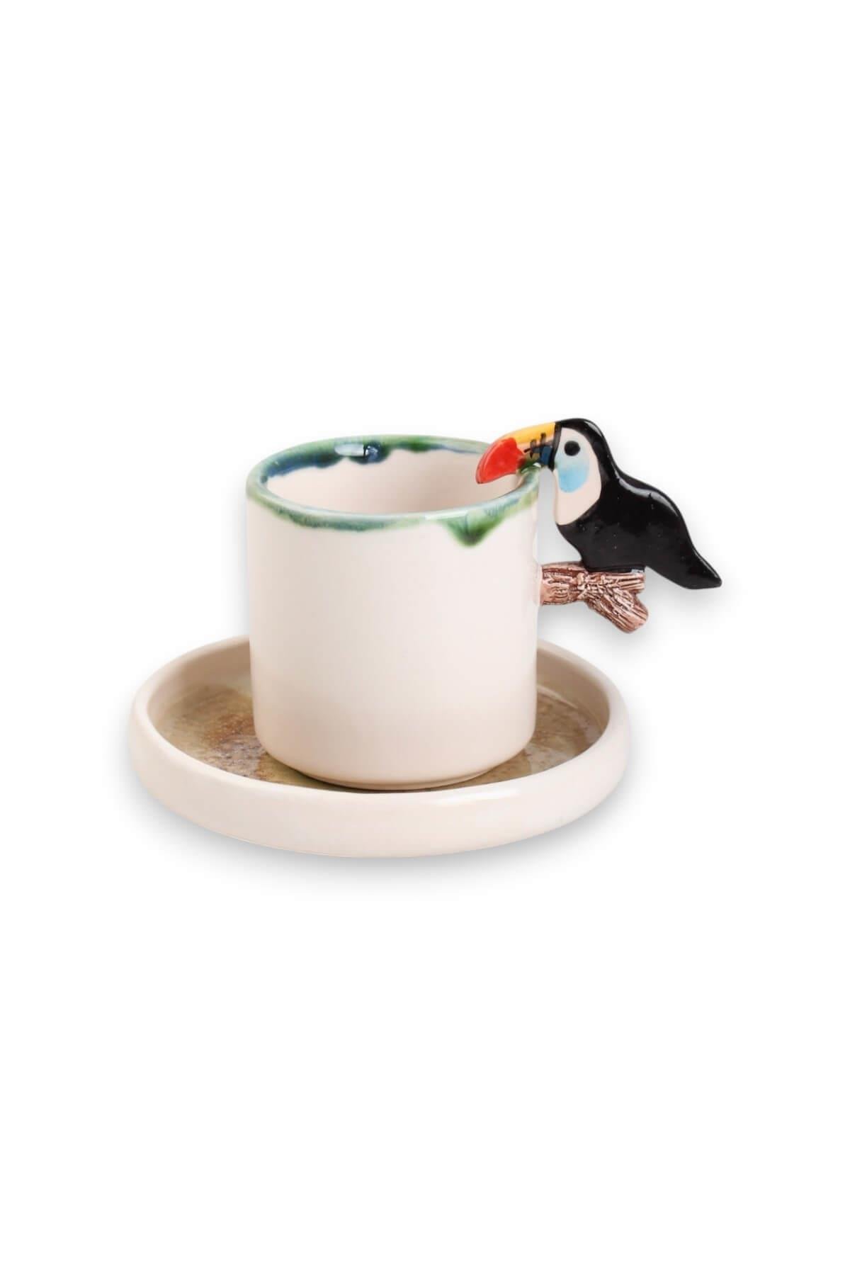 🦜 Seramik El Yapımı Tukanlı Kahve Fincanı